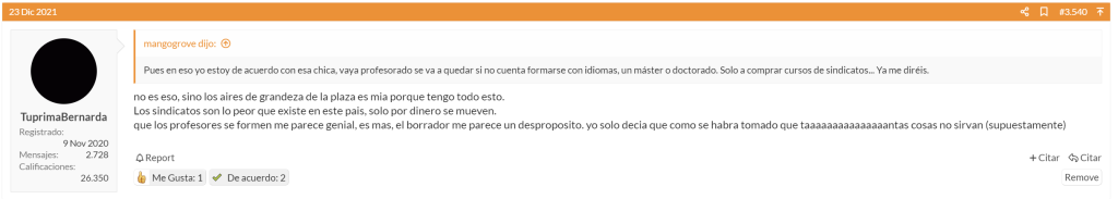 Han pasado años de eso y ahora puedo leer todos esos mensajes con perspectiva y quitarles importancia porque realmente no la tienen, pero si se leen en un momento de vulnerabilidad, a pocos meses de hacer un examen de oposición, sabiendo que la gente sabe tu nombre (porque tú lo has querido así), que las listas son públicas, etc, etc., la cosa cambia.