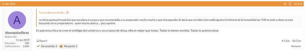 El punto de inflexión llegó cuando una chica que me seguía me pasó el link a un foro en la web de «cotilleando.es» donde había varios mensajes sobre mí y lo que yo publicaba en mi cuenta. Realmente no hubo más de 20 mensajes en los últimos meses de mi preparación pero en ese momento se hacen un mundo.