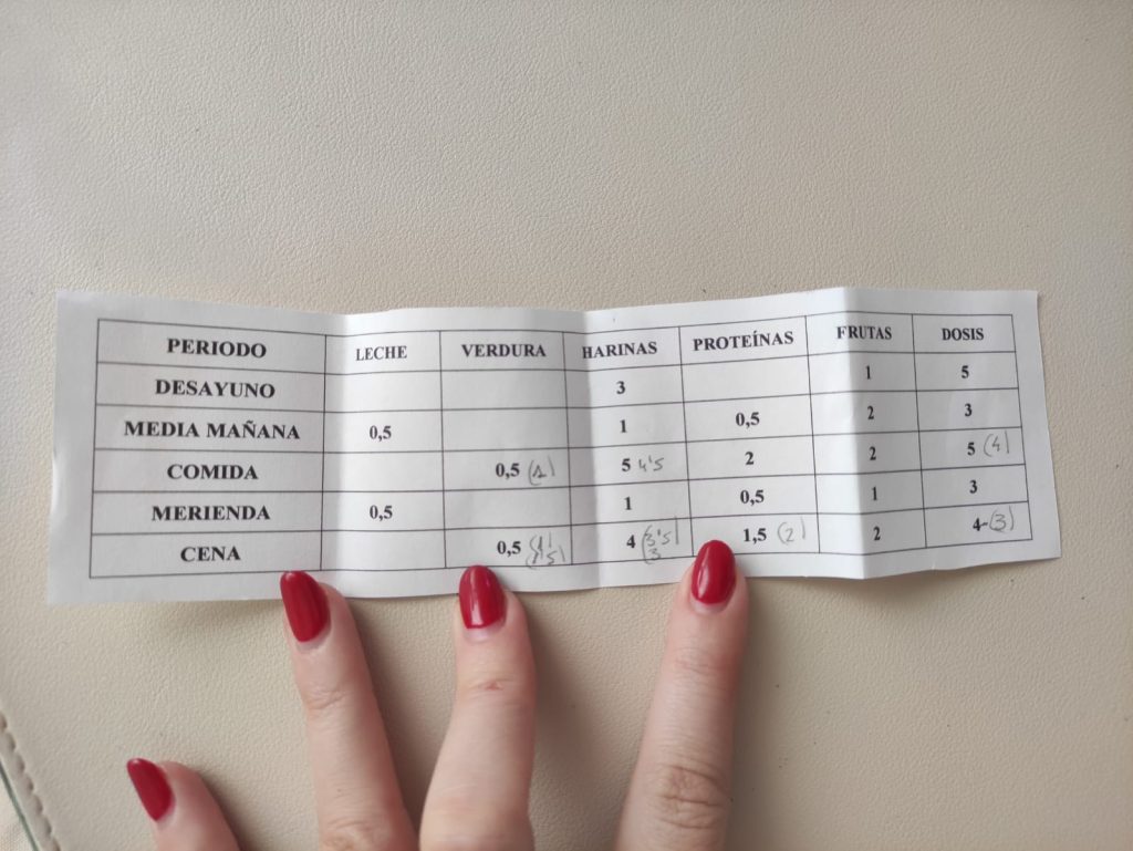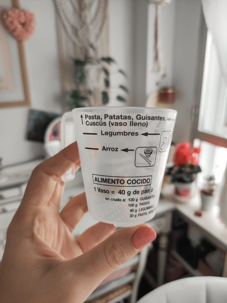 En el propio hospital me dieron muchas pautas de dieta a seguir y un vasito medidor para pesar y medir todos los hidratos que comía y así saber qué cantidad de insulina ponerme.
