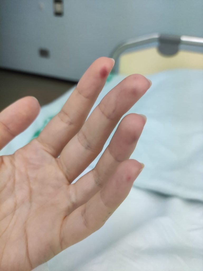 En ausencia del sensor en el brazo, tenía que pincharme en el dedo un mínimo de 10 veces al dia para medir los niveles, por lo que tenía las yemas de los dedos reventadas y me dolía teclear, usar el móvil o escribir. Lavarme el pelo o usar productos cosméticos era pesadilla por las heridas de los dedos. Menos mal que ahora está el sensor y a mí no tardaron en ponérmelo (siempre tienen preferencia los niños que debutan).